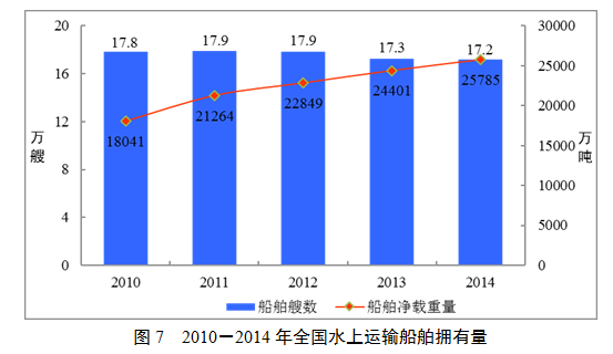 年末全国拥有水上运输船舶17.20万艘,比上年末减少0.3%;净载重量25785.22万吨,增长5.7%;平均净载重量1499.34吨/艘,增长6.0%;载客量103.23万客位,减少0.1%;集装箱箱位231.87万TEU,增长36.3%;船舶功率7059.85万千瓦,增长8.9%。