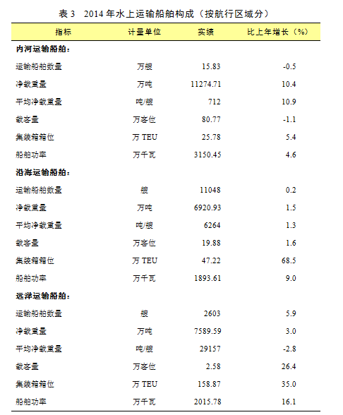 2.本公报中2014年全社会货物运输量为铁路、公路、水路、民航完成数,不包括管道数据。