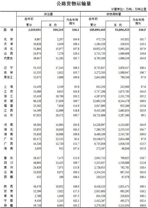 2015年4月公路货物运输量
