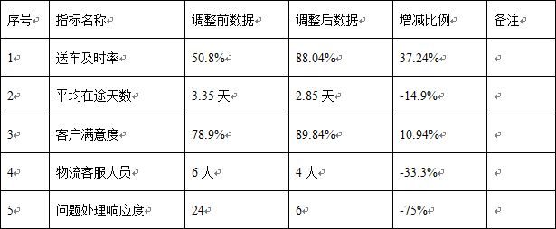 3) 客户满意度有较大提升,最大程度的避免因物流送车不及时或送车信息反馈不准确影响销售的情况发生。