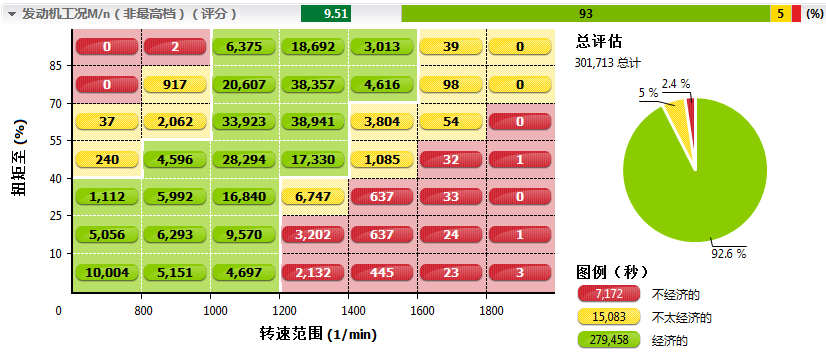 3. 虽然平均速度快,但最高挡行驶时间占比低,经济性不高;