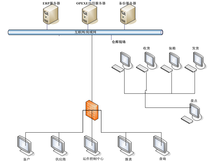 乘风运输管理系统生产管理解决方案网络设备包含数据库服务器、应用服务器和Web服务器。