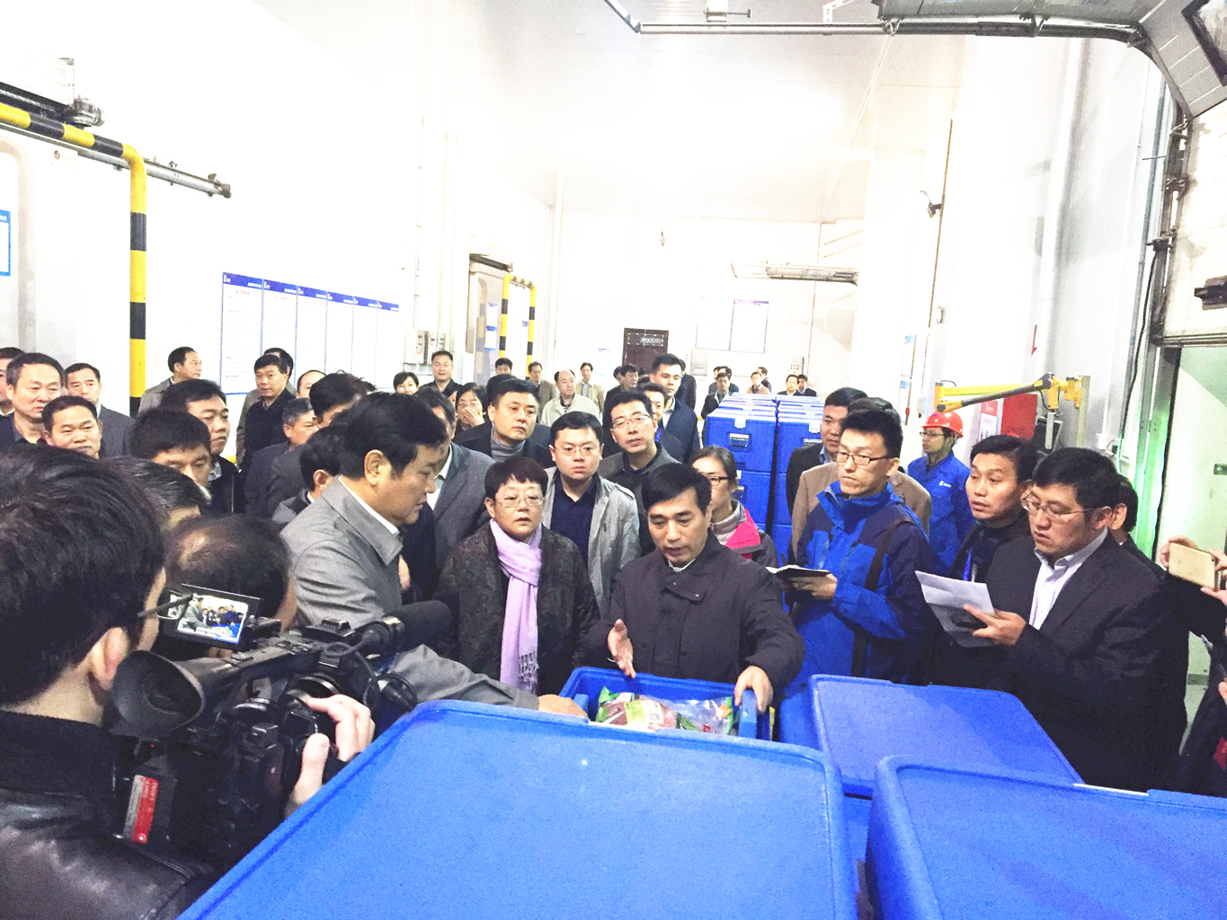 结束了与郑总的采访后,在鲜易控股朱献福董事长的引领下,河南省副省长赵建才、交通运输部运输服务业司巡视员王水平、各省辖市分管领导、省直管市(县)分管领导、交通运输主管部门、省发改委、工信委、财政厅、交通通运输厅、农业厅、商务厅、工商局、质监局、省政府金融办、食品药品监管局、民航办、郑州铁路局、国税局、郑州海关、出入境检验检疫局、省邮政局等单位领导,以及鲜易控股、许昌众荣、漯河双汇、大象物流、华夏易通等冷链物流企业、生鲜食品企业、药品生产企业、冷链设备制造企业、交通物流协会、物流协会冷链物流专业委员会等人员共同参观了鲜易供应链的展示大厅。