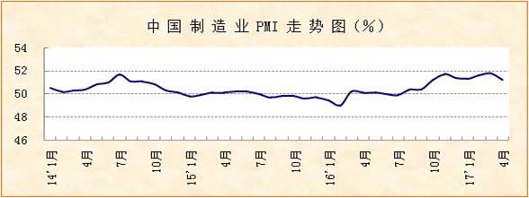 中国物流与采购联合会、国家统计局服务业调查中心发布的2017年4月份中国制造业采购经理指数(PMI)为51.2%,较上月回落0.6个百分点,但仍连续7个月保持在相对较高水平。指数回落,主要受基础原材料行业尤其是高耗能行业明显下降影响,装备制造业、消费品行业稳中有升,高技术产业保持相对较高水平。结合分项指数来看,市场价格回落明显,有利于减轻通胀压力;企业经营活动良好,小企业明显回升;供需增长势头略有回调,但基本面没有明显改变。总体来看经济运行保持平稳,结构性回调特征明显。