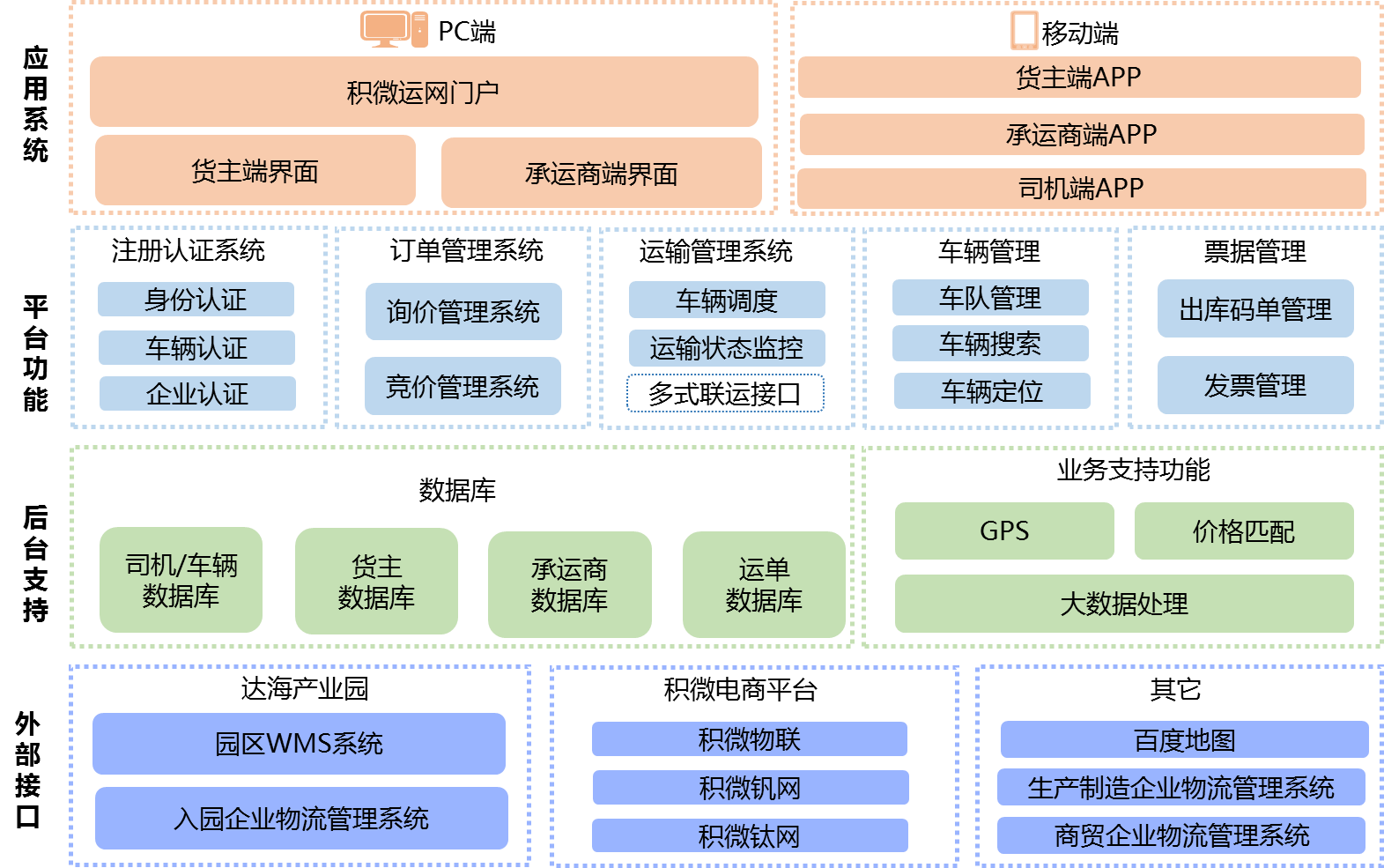 图1 积微运网无车承运人服务平台功能构架