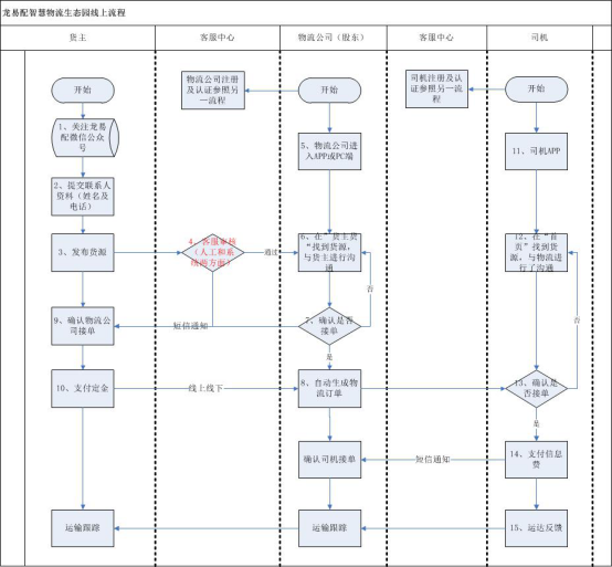 “龙易配”提供一种实现货物运输全程实时跟踪的方法,通过物联网技术实现货物运输过程的全程实时跟踪,通过“龙易配”实现跟踪信息的实时交互。步骤如下: