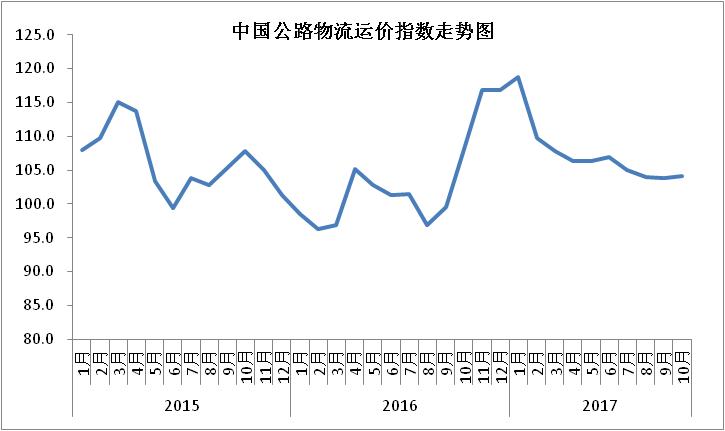 中国物流与采购联合会发布的2017年10月份中国物流业景气指数为54%较上月回落0.3个百分点;中国仓储指数为55.1%,较上月回升4.2个百分点;中国公路物流运价指数为104.08点,比上月回升0.18%;中国电商物流运行指数同比指数为122.3点,比上月回升1.3点。