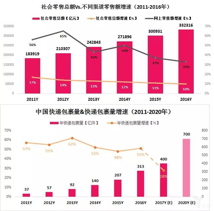 →线上零售未来几年仍为带动社会零售总额增长的主力,包裹数2020年或将突破700亿件: