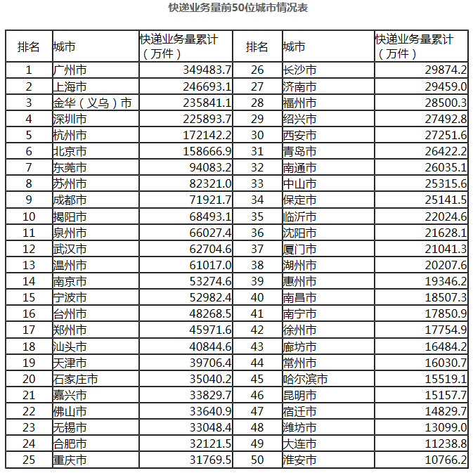 9月份,邮政服务业务总量完成162.1亿元,同比增长11.4%;邮政寄递服务业务量完成19.2亿件,同比下降2.9%;邮政寄递服务业务收入完成29.8亿元,同比增长2.4%。