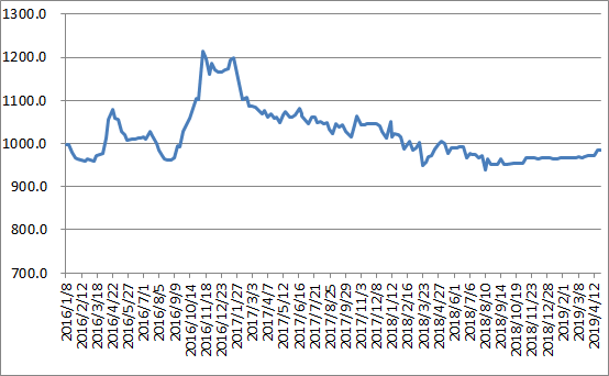 本周(2019年4月22日-4月26日),由中国物流与采购联合会和林安物流集团联合调查的中国公路物流运价指数985.53点,环比回落0.03%。