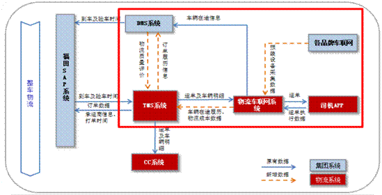 为配合福田集团工业 4.0 项目,同时提升普田物流在福田汽车集团以及在整个物流行业的地位和形象,确立物流行业内的竞争优势地位,公司内部经过对现有整车业务现状、系统建设目标范围及预期效果、新信息系统架构与功能实现、新系统建设组织机构与项目管理、系统建设项目预算五个方面进行详细论证与分析,最终建立整车物流车联网技术方案。覆盖整车物流从接单到送达验收全部作业过程的系统自动化、透明化管理,实现系统自动接单、自动匹配运力、自动跟踪在途数据、自动预警报警、自动起运到达、自动退账计酬、自动结算、承运商和司机自动评价、自动积分、自动排名、自动信息提醒、自动报表输出等,减少了人为干预,有效提升了系统作业数据的准确性、真实性。