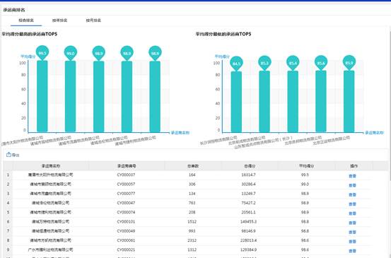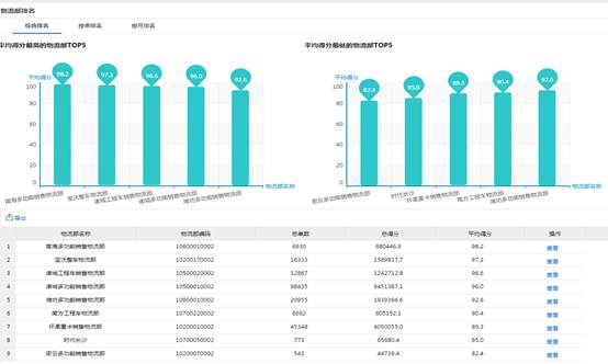 首先,系统针对不同的运输任务,输出相应的评价数据;然后,根据评价指标及标准(送达时间、车辆质损情况、外观整洁情况、服务规范及态度、附件齐全情况等)进行相应运输质量/服务质量的评价;接着,系统会充分整合作业的过程数据(包括位置数据、时间数据、油耗数据、里程数据、质量数据、成本数据、驾驶行为数据、异常数据、预警报警数据等等数据)来考量评价结果是否客观;其次,评价结果遵循既定的积分规则,生成对应承运商/承运司机的物流运输/物流服务的积分排名。最终,评价数据和积分数据汇总于绩效数据中,通过结算数据进行绩效兑现,并应用于业务管理:依据作业结果及经销商对物流的评价结果对相应承运商排名实施相应业务量的激励,从而提升物流服务。