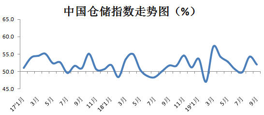 中国物流与采购联合会发布的2019年9月份中国物流业景气指数为53.8%,较上月回升2.9个百分点;中国仓储指数为52%,较上月回落2.3个百分点。