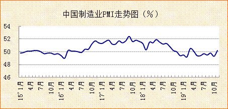 中国物流与采购联合会、国家统计局服务业调查中心发布的2019年11月份中国制造业采购经理指数(PMI)为50.2%,较上月上升0.9个百分点,连续6个月运行在50%以下后回到扩张区间。分项指数显示,本月国内需求扩张,外部需求改善,企业采购和生产活动趋于活跃,市场价格有所下行,就业相对稳定。大部分行业增速有所回升,新动能和消费品保持较好带动作用。综合来看,指数明显回升,经济运行趋稳。