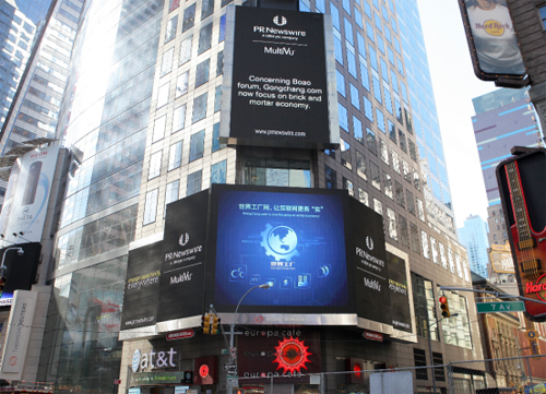 正在亚洲各国领导人共聚博鳌论坛,畅谈互联网时代之下的亚洲经济新未来时,中国新一代工业品B2B平台——世界工厂网也正在纽约时代广场大屏幕上宣传着互联网新主张。