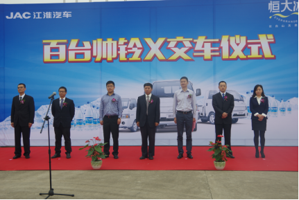 自国四升级换代以来,江淮凭借强大的研发实力,预判市场发展趋势,提前响应用户需求,不断推出领先市场的新产品。以本次恒大冰泉采购的帅铃X车型为例,其创新应用都市轿卡新思路,跨界整合轿车、轻卡两类车型的优势,开发出独具特色的兼具轿车舒适性和轻卡承载性的帅铃X小卡车型,它采用低货台设计,使得用户装卸商品非常方便,键控式车窗、后视镜、中控台等高档配置,完全依轿车化标准打造,采用前独立悬架,结合江淮五十年底盘设计实力,具有更美造型、更易驾控、更加舒适、更佳安全、更具价值等优势。事实上,国内首创的江淮高端小卡帅铃X,由于前瞻的理念和高端的性能,目前不仅在国内尚没有竞争对手,而且出口土耳其、巴西市场,广大的国外客户也为源自中国的新车型点赞。