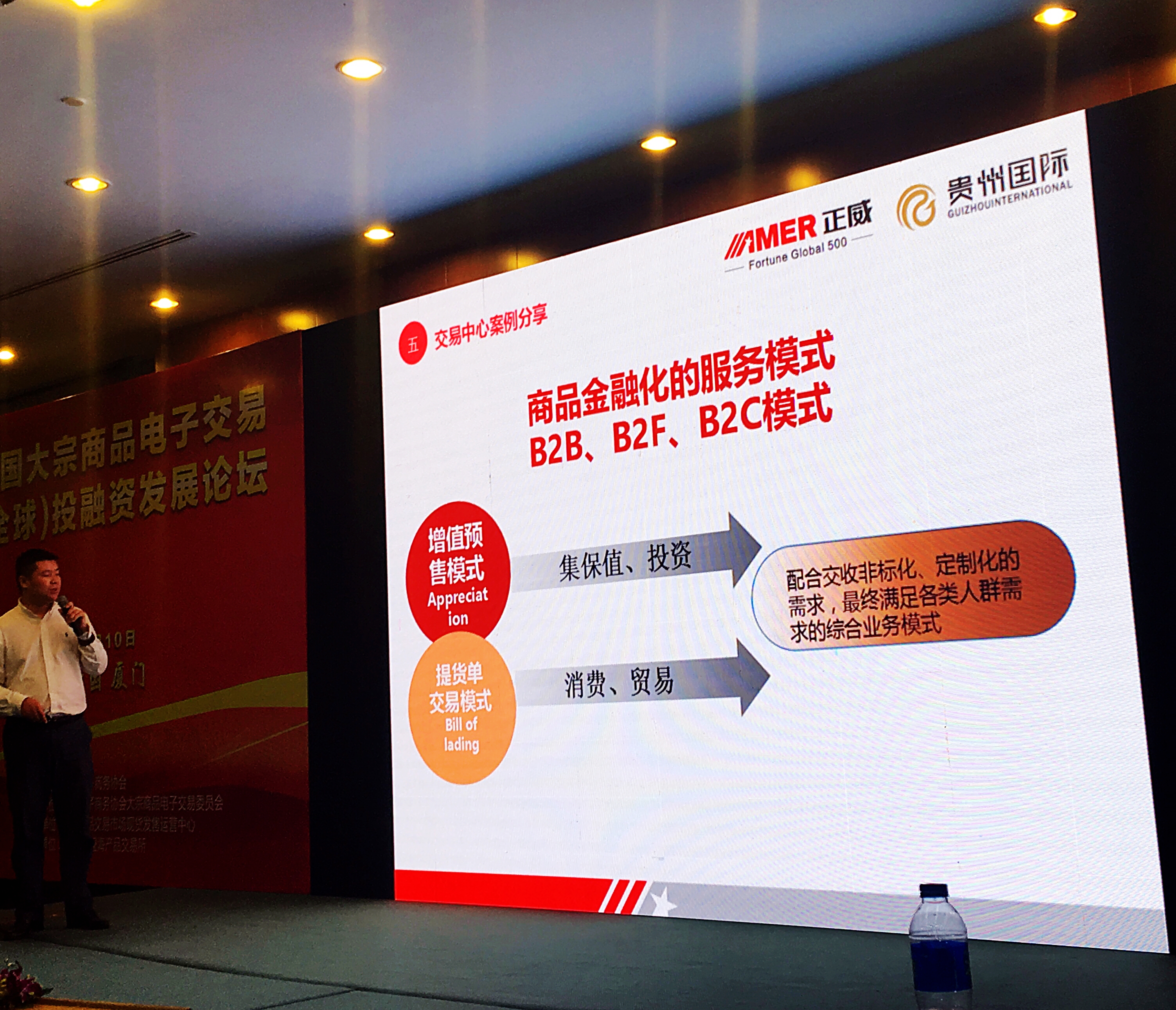 世界500强正威集团—贵州国际商品交易中心总经理何勇发表主题演讲《供给侧改革下的商品交易市场创新建设》。