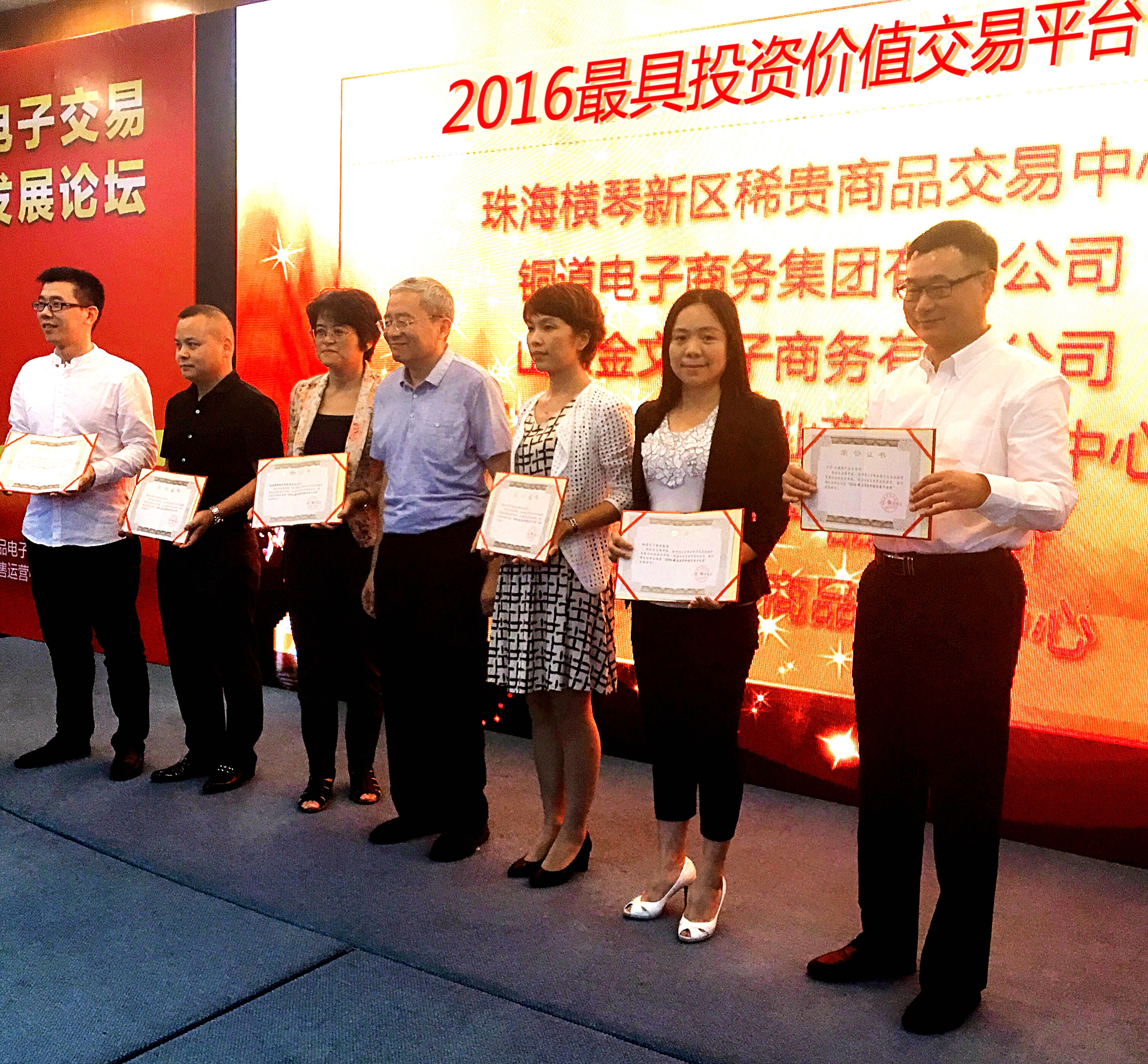 论坛闭幕仪式中,中国大宗商品电子交易委员会委派国家发改委宋承敏司长对优秀单位进行表彰颁奖,铜道电子商务集团有限公司荣获“2016中国大宗商品最具投资价值交易平台奖”称号,这是行业协会及各位专家评委对铜道电商平台的高度认可与信赖,铜道集团将继续秉持:“专业、诚信、高效、创新”的核心理念和“聚合产业资源,提升客户价值”的使命,继续努力前行!