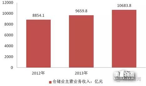 在国家相关规划与政策的推动下,2014年仓储业规模稳步增长,运行总体平稳。据测算,截止至2014年底,全国仓储企业约2.9万家,从业人员约92.9万人,行业资产总额约2.07万亿元,全国营业性通用仓库面积约9.1亿平方米,冷库总容积约9562万立方米。2014年,仓储业固定资产投资额约5158.7亿元,同比增长22.8%,主营业务收入约10683.8亿元,同比增长10.6%,主营业务成本约8278.5亿元,同比增长9.5%,主营业务利润约1980.8亿元,同比增长12%;收入利润率为18.7%,同比增长0.2个百分点。净资产收益率为5.39%,较上年降低0.04个百分点。
