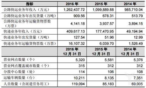 快运、零担企业在运营过程中,相比于快递企业不需要太多人力,但是将业务扩展到快递业务之后,就需要在基层铺设更多的配送网点,招揽更多的一线快递员完成配送任务,这方面从德邦的招股书中可以看到,德邦自从2013年进军快递业务后,公司人数在直线上升,从2014年的5万多升至2016年11万多,人力成本压力很大。