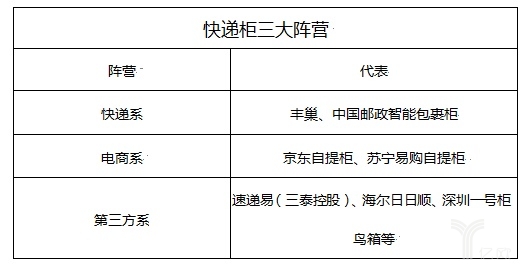这里主要包括邮政、丰巢、日日顺乐家、京东自提柜等充分利用上游快递资源的大玩家和e栈、格格货栈、递易、云柜等中小型平台,行业将其分为电商系、快递系和第三方系三类。