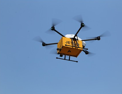本次无人机首次试飞,使用的是迅蚁公司提供的捷雁无人机速运系统。据悉,该款无人机采用六轴设计,配备25升大容量货仓,最大载重10公斤,续航时间35分钟,最大航程可达30公里。该款无人机可摆脱遥控器束缚,实现超视距全航程自主飞行,输入确定的起飞地和目的地后,可以定点起降。