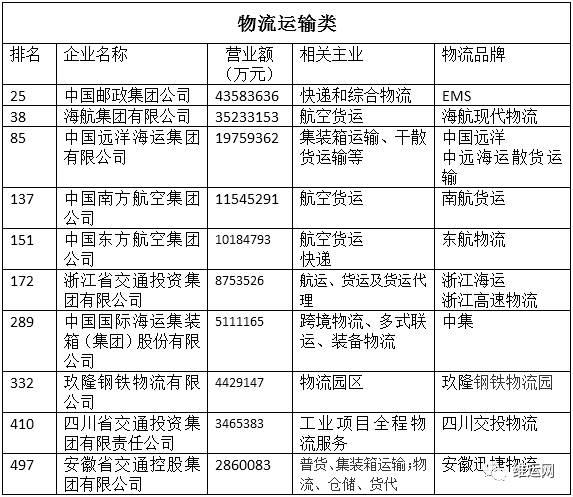 这些物流企业上榜中国企业500强 业绩超乎你想象