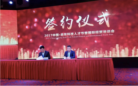 12月1日,“ 2017中国·启东科技人才节暨国际经贸洽谈会”在江苏省启东市隆重举行,江苏省南通市委常委、政法委书记姜永华、启东市委书记王晓斌等出席开幕式并发表讲话,润恒集团董事长毕国祥先生与启东市委副书记、市长黄卫锋就投资建设“中国吕四国际水产品交易中心”项目正式签约。集团副总裁丰安国、设计总监胡颙、投资发展部总经理李亚军、刘跃辉等共同参加签约仪式。