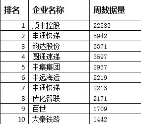 ① 12月第3周中国物流全部上市公司排行榜