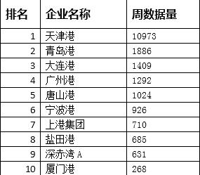 在12月第3周的中国物流上市公司港口类排行榜中,天津港遥遥领先“京津冀地区前11个月通过天津口岸进出口超千亿美元”的消息监测期最热。青岛港本期抢位第二,“首个亿吨石油码头在青岛港建成”的消息监测期最热。