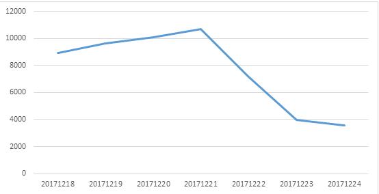 12月第3周(12月18日-12月24日),本次监测期正值“双12”期间,传播量相比上周大幅上涨。