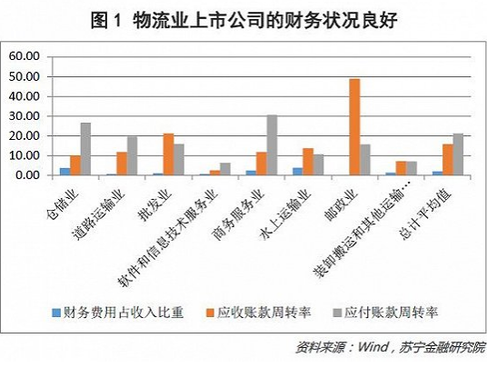 如图1所示,物流业上市公司的财务费用占营收比重大多较低,应收账款和应付账款周转速度较快。同时,由于存在较大规模的可抵押固定资产,银行对这类企业授信的传统渠道也较通畅。