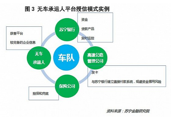 (2)依托平台获客。通过与近年崛起的无车承运人平台的合作,同时提供平台授信和平台中企业授信和结算业务。更重要的是,这些银行通过扎实的大数据风控技术,通过线上渠道对物流企业和运输车队进行实时跟踪,与负面清单模式结合,从“一头一尾”两端“堵死”违约风险。