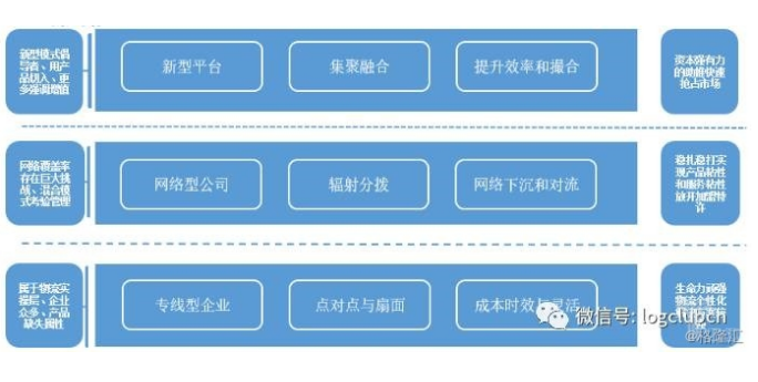 其实在这张竞争的网络上,三网的格局最大的基础依然是我们处于底座的专线型,这依旧是基石,依旧是行业的基础,也是行业的主力军,分布之广、从业者之多、承担的大部分的社会运量、很多的优质的干线脱颖而出,从标准化、班车化、从信息化、透明化、从系统化、可视化上开始发力,唯一的不足就是点对点的网络直达,但是做的有价值、有体验、前端足够强的揽货手段就是最好的竞争武器。