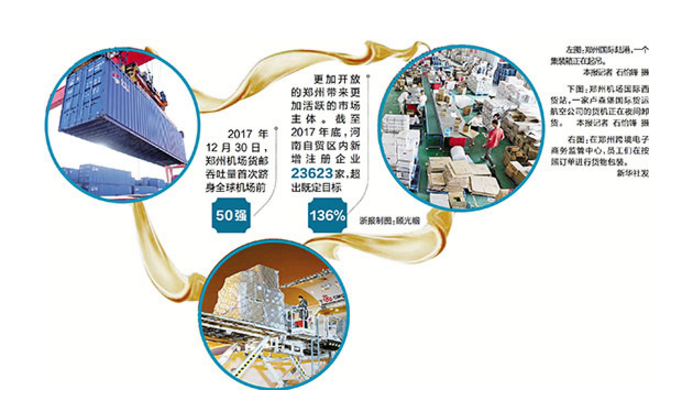2017年12月30日,郑州机场货邮吞吐量首次跻身全球机场前50强。这是郑州以及河南深度融入“一带一路”建设、走向开放的生动写照。