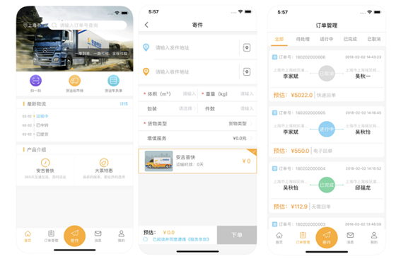 以上快运APP普遍具有两大基础功能,即下单发货和查询功能。但是,不同的快运企业对此两大基础功能的细化程度不同: