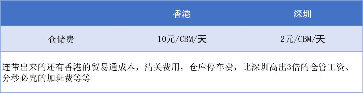 首先,我们拿与香港较近的内陆城市-深圳做下(两地仓库部分成本)对比: