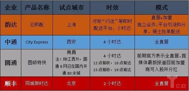 几家快递巨头新业务的“共同点”一目了然——聚焦同城配送,限时达也好,即时配也罢,目标都是同城业务。