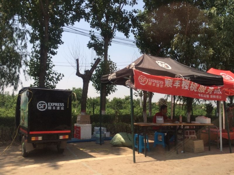 西安周边主要是早熟樱桃,宝鸡等地有大棚樱桃。以前,樱桃以前主要通过水果市场批发零售到西安等周边区域,过程漫长,往往需要搬运、拆分,损耗在所难免。航空公司也有货运,但主要以在机场接货为主,并未看到太多直接到田间地头、然后送达客户的案例。