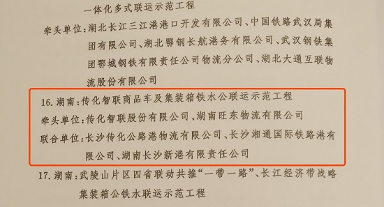 就在11月20日,交通运输部与国家发展改革委公示了第三批24个多式联运示范工程项目名单,传化智联打造“互联共享、网络全国、辐射国际”的商品车及集装箱铁水公联运示范工程成功入选!