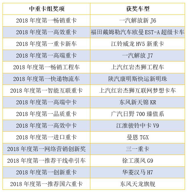 本着专业性和权威性的宗旨,2018“谁是第一”商用车年度评选立足于广大用户和专业评审多重视角,从中重卡、大中客、轻卡及皮卡、轻客及MPV、新能源和零部件等六大领域,全面深入地发掘优秀品牌。经过前期的层层筛选、激烈的线上投票以及总决赛现场的线下投票,本次活动共评选出50个奖项。其中包括由现场专家评委及观众投票决出的“2018年度第一节油轻卡”、“2018年度第一畅销轻客”以及“2018年度牵引车第一动力”三项大奖;以及总决赛现场揭晓的本年度六个神秘大奖,分别为“2018年度第一畅销重卡”、“2018年度第一网络营销创新奖”、“2018年度第一高效轻卡”、“2018年度第一畅销电动巴士”、“2018年度第一轻客”、“2018年度国六商用车第一动力”。