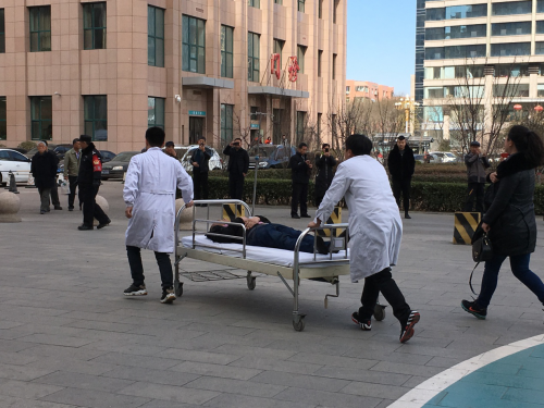 11:17,直升机于山西省心血管病医院落地,患者被及时送入医院接受救治。