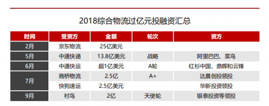 2018年综合物流过亿元投融资汇总