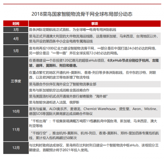 2018菜鸟国家智能物流骨干网全球布局部分动态
