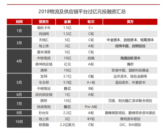 2018年物流及供应链平台过亿元投融资汇总