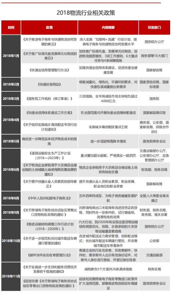 头条一:2018物流行业相关政策一览