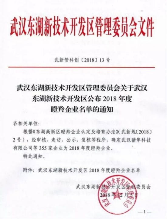 其市场收入、增幅及信用指标均符合“瞪羚计划”的相关标准,从而成功入围东湖高新区“2018年瞪羚企业”,这也意味着司机宝良好的经营业绩和信誉得到了政府及相关机构的高度认可。