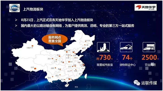 过去上汽物流板块的优势在全产业链的纵向能力,与天地华宇的融合使得上汽物流板块具备了横向发展的能力。一方面组建了一张全覆盖的网络,一方面依托于全国性的零担快运网络,立足于标准化的高效运输服务,形成了服务于全地域、全行业的横向能力。