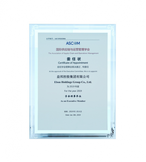 会后,ASCOM向2018年新入会的企业代表颁发了2019年学会的委任状,益邦控股集团有限公司被委任为2019年国际供应链与运营管理学会理事单位,将共同参与筹备学会各项相关事宜。
