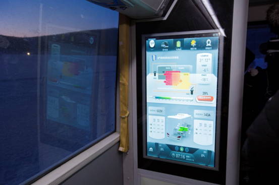 其中,在面对零下30℃以下,整车静止40小时以上的极寒条件,福田欧辉全气候纯电动客车在6分钟内将电池温度从零下20℃升至零上10℃左右,整车一次性启动成功。并且在面对20%的爬坡试验、低温充放电、加热保温、整车采暖、除霜等性能上也取得了全面突破,完全禁受住了高寒环境适应性考验。